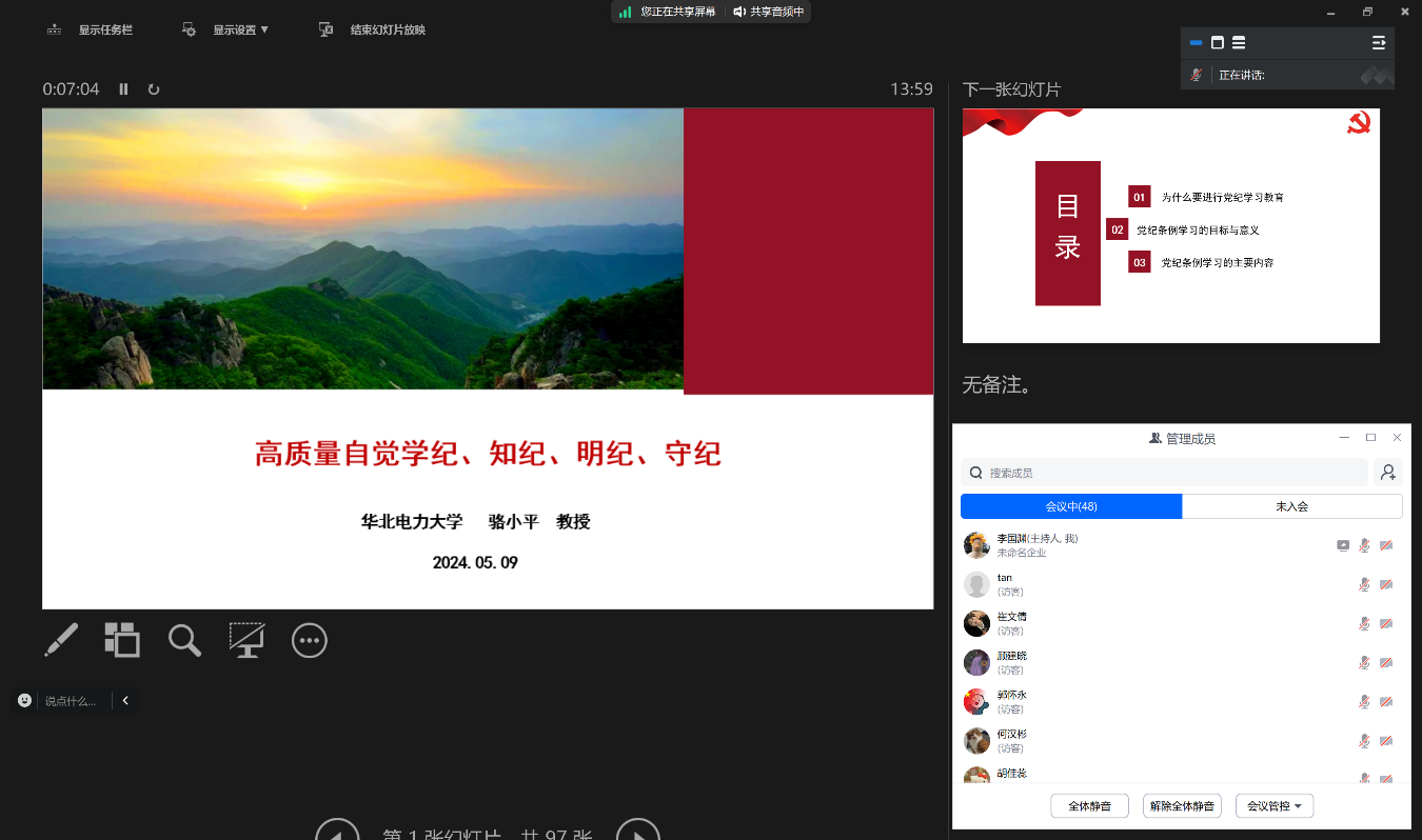 骆小平教授从为什么要进行党纪学习教育、党纪条例学习的目标与意义、党纪条例学习的主要内容三个方面进行讲授。她强调,纪律严明是党的光荣传统和独特优势,是我们党不断从胜利走向胜利的坚强保证。治理一个国家、一个社会,关键是要立规矩、讲规矩、守规矩。要让党员明白哪些事能做,哪些事不能做,要做到“心有所畏、言有所戒、行有所止”。讲规矩是对党员、干部党性的重要考验,是对党员、干部对党忠诚度的重要检验。
