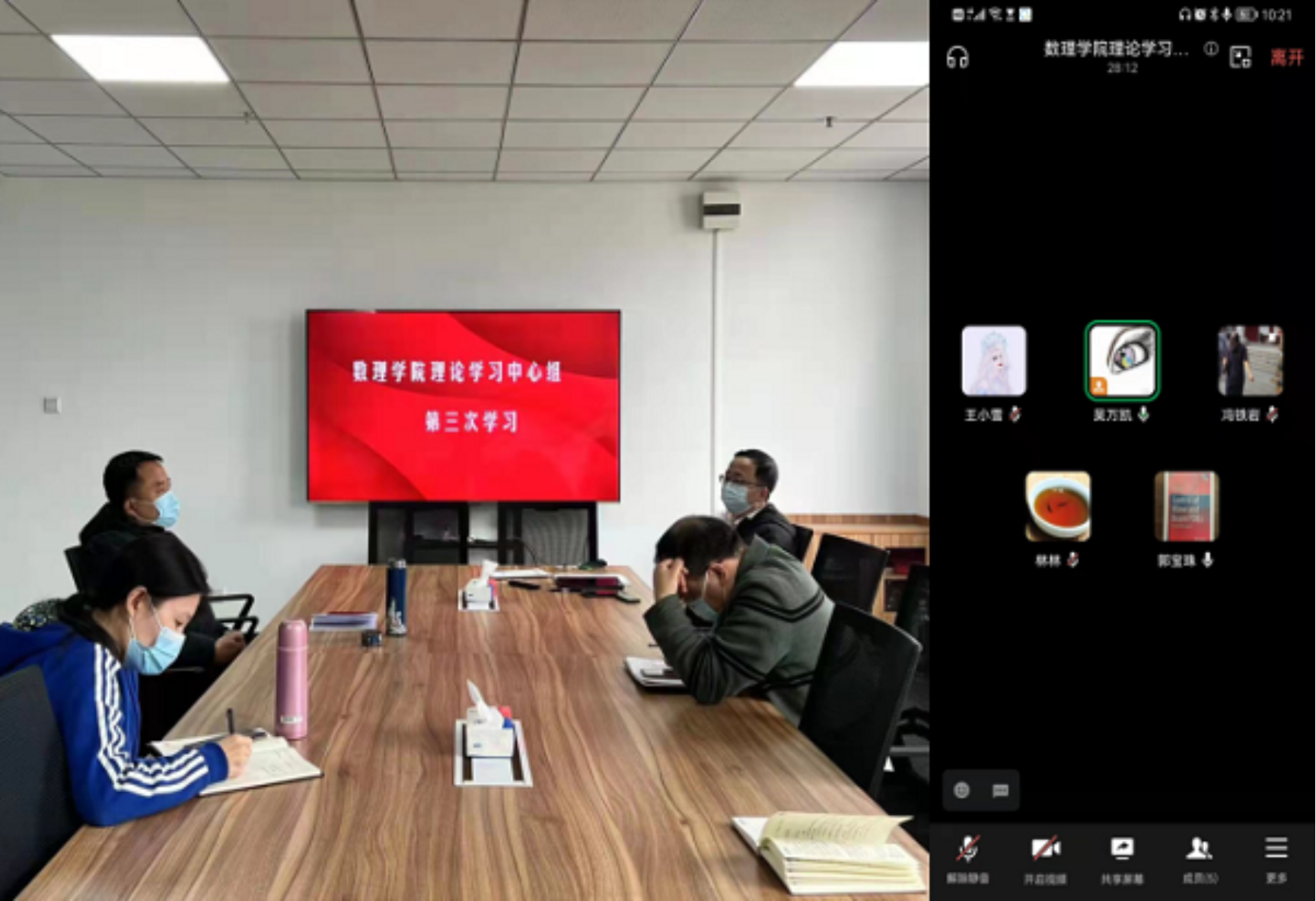 郭宝珠表示,“双碳”目标的确立是以习近平同志为核心的党中央经过深思熟虑作出的重大战略决策,是贯彻新发展理念、推动高质量发展的必然要求,是学校发展重大机遇。要把“双碳”理念融合到教育教学、科学研究、学科建设中,加强战略谋划、强化交叉融合、促成协同创新,充分发挥数理学科支撑作用,以“双碳”目标为发展机遇,实现数理学科发展新突破。丁迅雷提出要充分认识双碳目标战略的重要意义,从碳达峰行动主要目标上思考学院发展方向,从重点任务中确定研究重点,不仅要注重理论研究,还要加强实验研究,要重视能源与生活的密切关系,科学处理好发展和减排,不断提升发展质量,共同为建设资源节约型、环境友好型社会贡献力量。